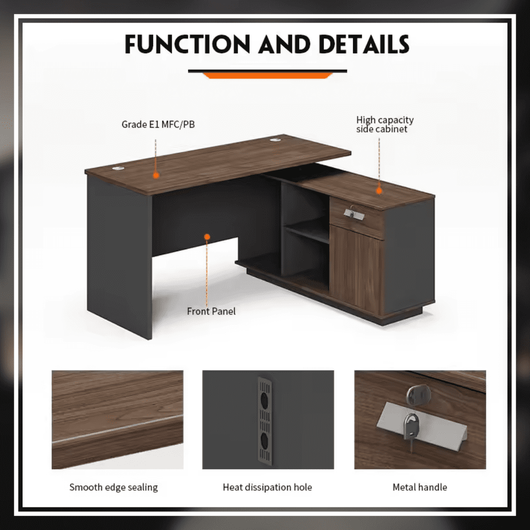 - 🗄️ Wide side filing cabinet with generous storage capacity.