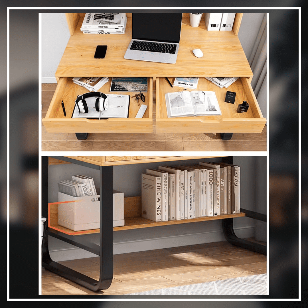 RackNRead Table | Study Working Home Office Desk | Pine Yellow Color